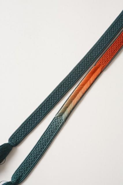 青緑色に橙茶の帯締め4,000円(税込4,400円) SOLD OUT -