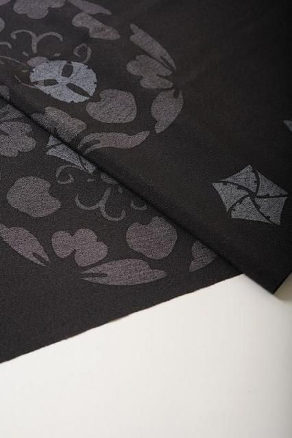 黒に型染め花葉の帯揚げ8,000円(税込8,800円) SOLD OUT -