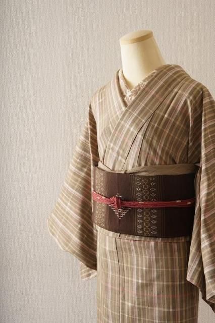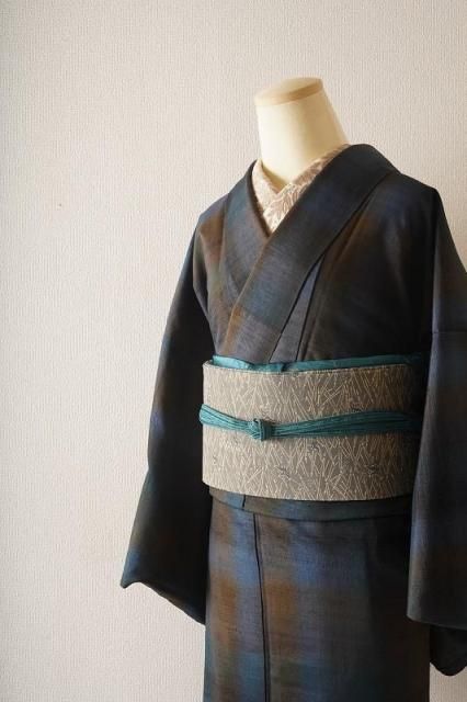 青朽葉色に縞格子の紬15,000円(税込16,500円) SOLD OUT