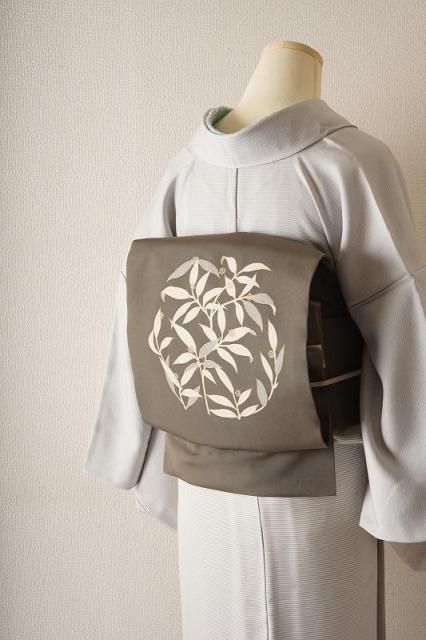 海松色に葉模様の塩瀬名古屋帯18,000円(税込19,800円) SOLD OUT -