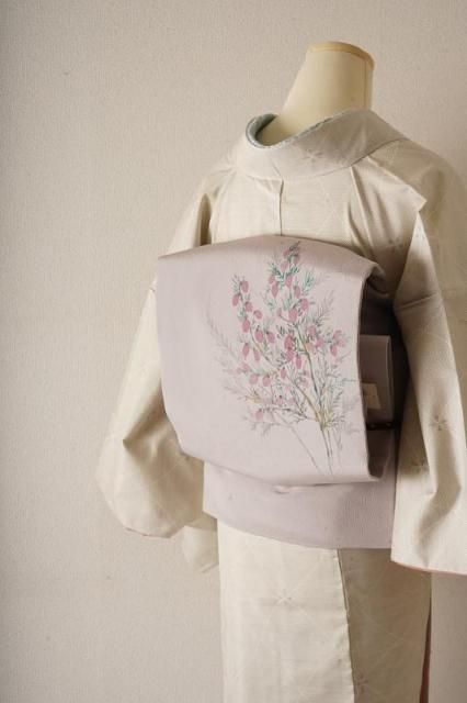 牡丹鼠色に草花のちりめん名古屋帯12,000円(税込13,200円) -