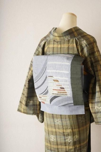 鶯色に型絵染めのちりめん名古屋帯18,000円(税込19,800円) -