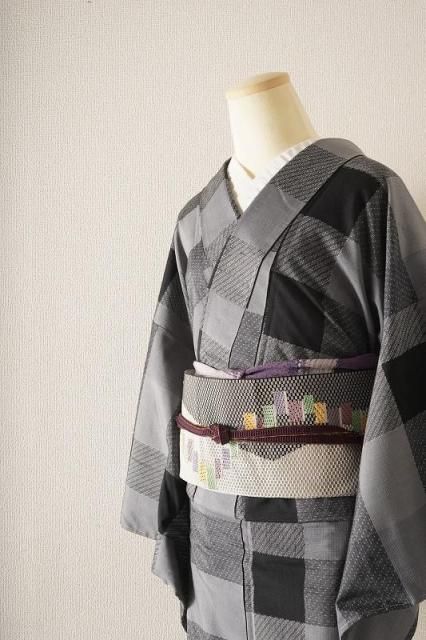 絹鼠色に和色段模様の名古屋帯24,000円(税込26,400円) -