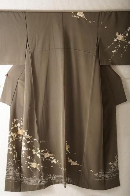 海松色に扇四季草花の付け下げ22,000円(税込24,200円) -