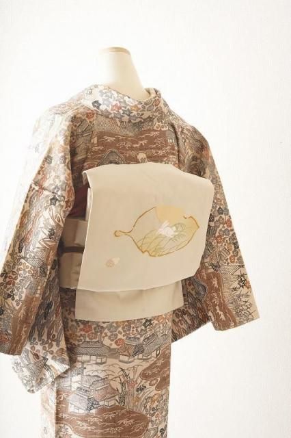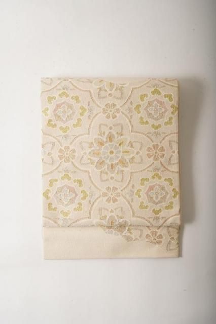 淡黄色に草花の塩瀬名古屋帯12,000円(税込13,200円)