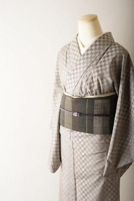銀鼠色に市松蚊絣の紬27,000円(税込29,700円) -