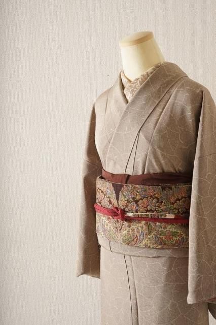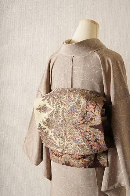 ベージュに唐花草のちりめん名古屋帯25,000円(税込27,500円) -