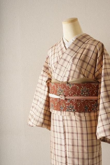 薄香色に縞格子の紬20,000円(税込22,000円) -