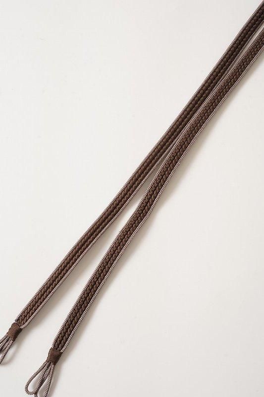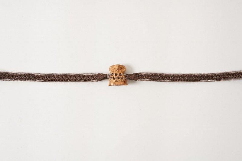 鉄黒と消炭色の帯締め <梟の帯留め付き>