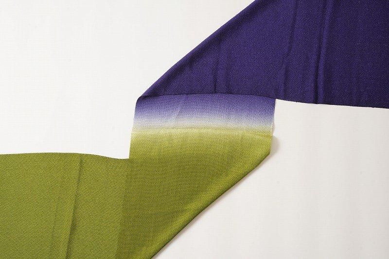 ■特記:苔色から瑠璃紺色への染め暈しのちりめん地。