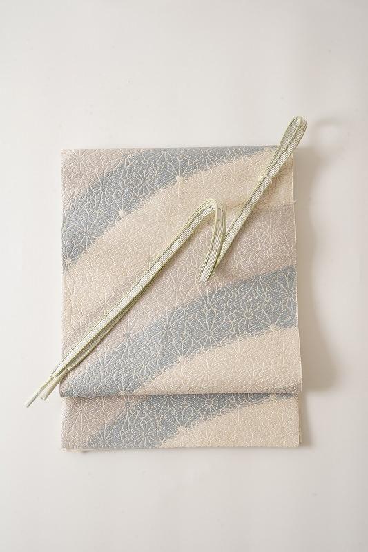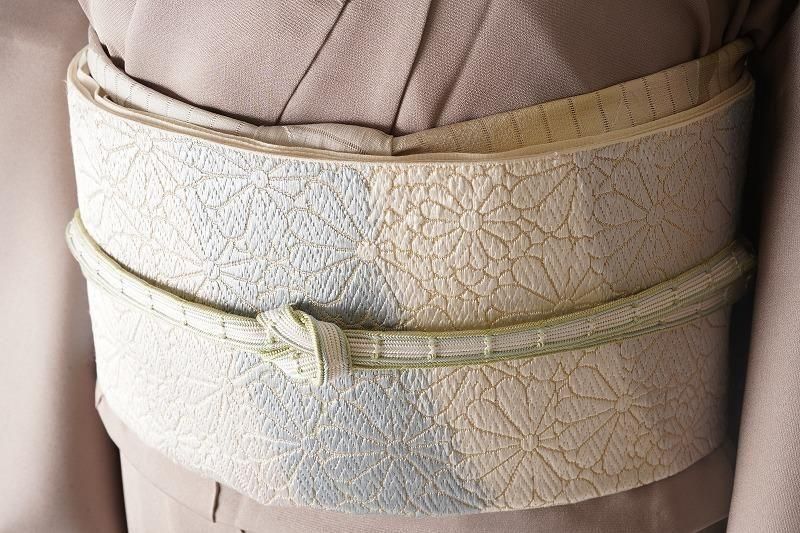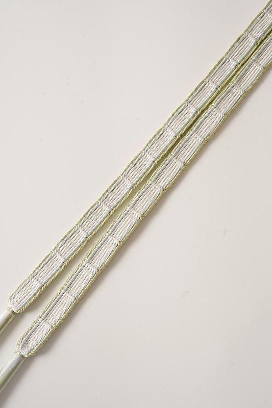 白に苗色と水色の帯締め