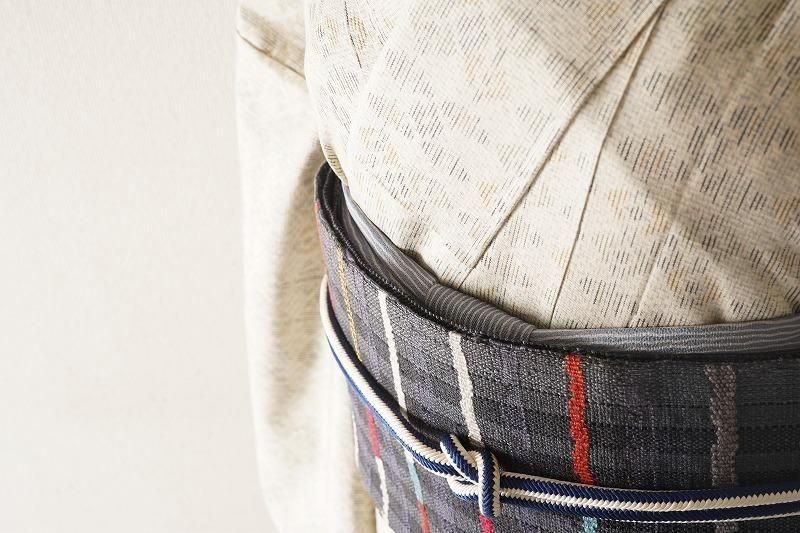 薄花色によろけ縞の帯揚げ