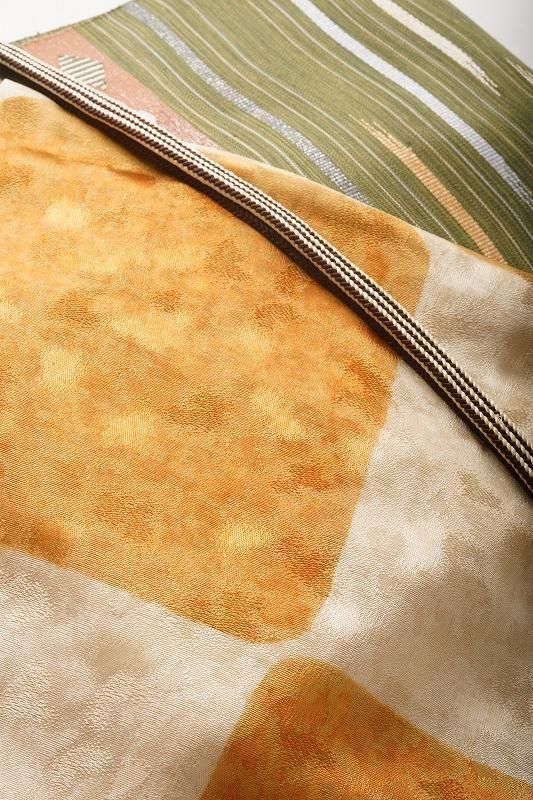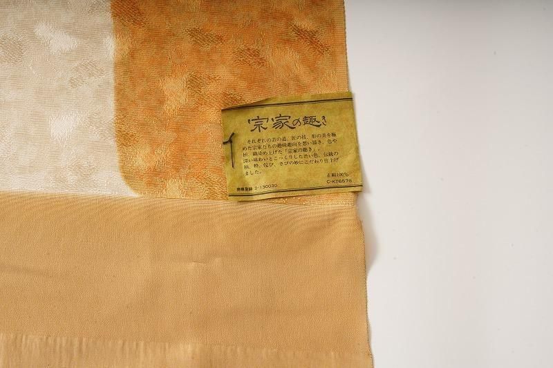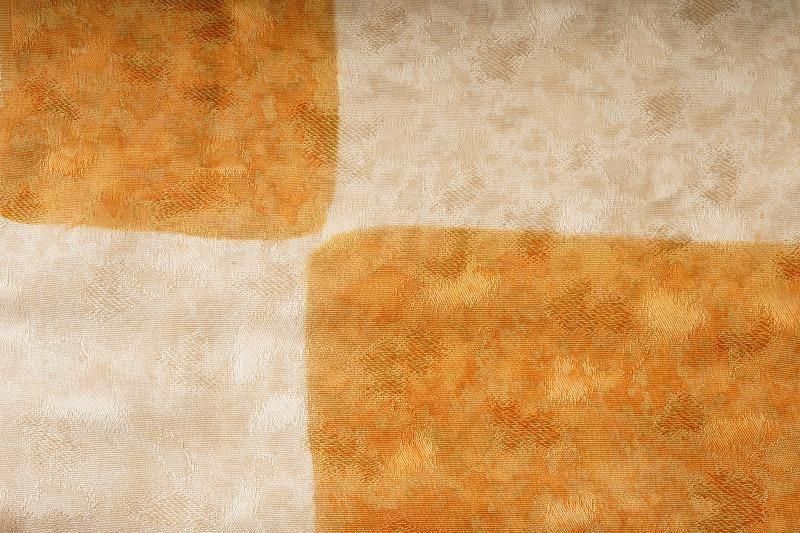 ■特記:地紋入り。黄金色と練色の市松柄です。