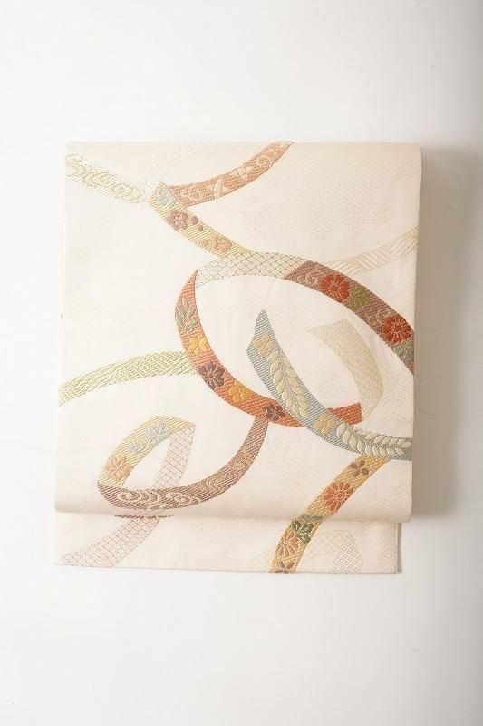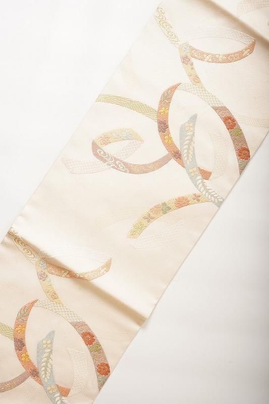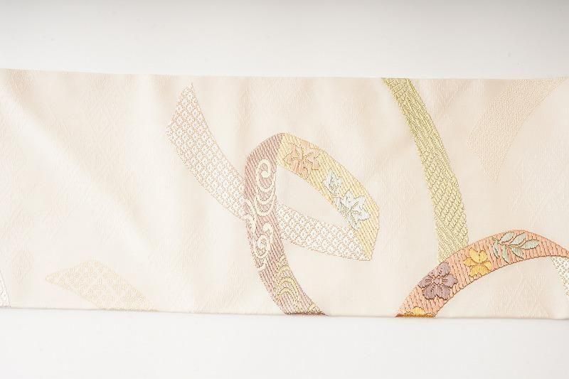 業平菱の地模様が入った薄香色の地に、柔和な色味のかずら帯を、唐織でのびやかに表現されています。