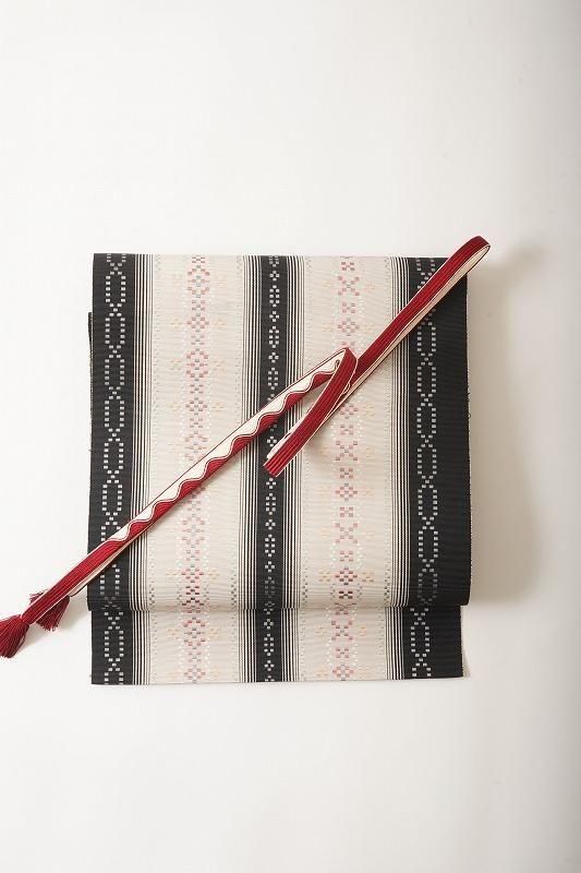 えび色に波模様の帯締め