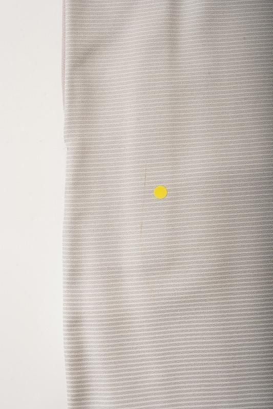 ■商品の状態:左袖後に約6cと1cの黄色い筋汚れがみられます。下前前幅下から16c付近に約1cのうっすらとした黄色いよごれがみられます。衿にうっすらとしたベージュ色の筋汚れがみられます。