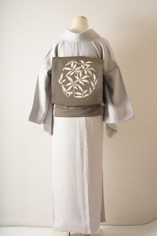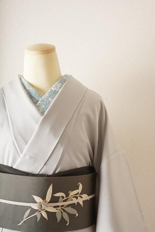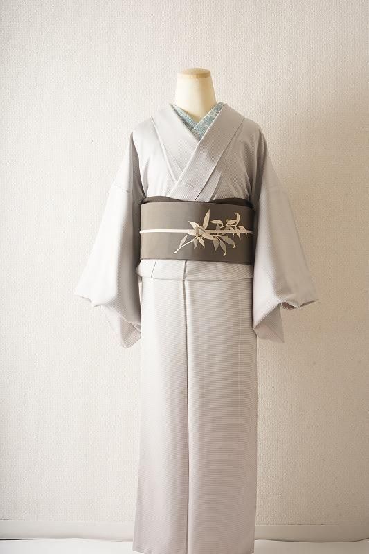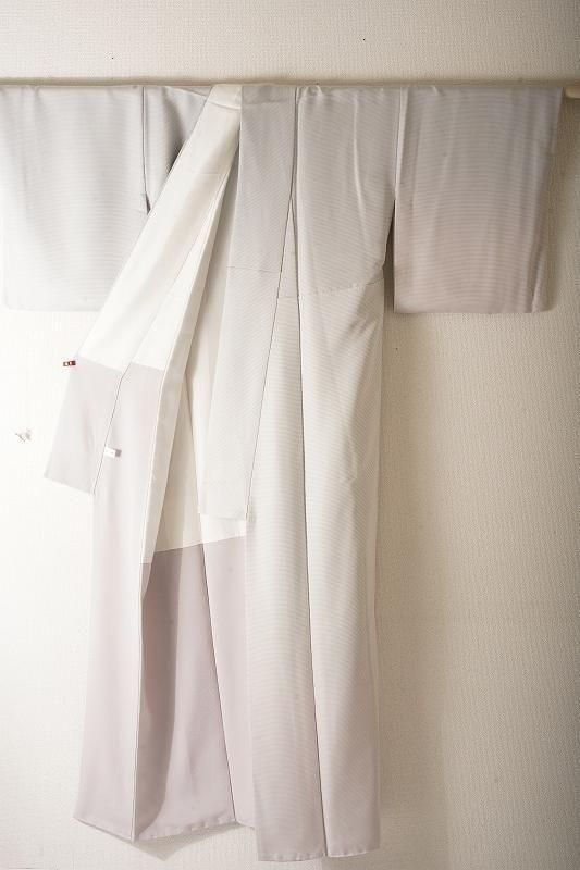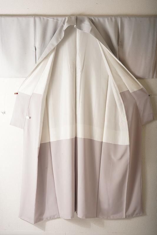 ■特記:くすみ系の灰紫色。細かな縞に、ほのかに移り行くグラデーション。上品で穏やかな佇まいを引き寄せる上品カジュアルな付け下げ小紋です。