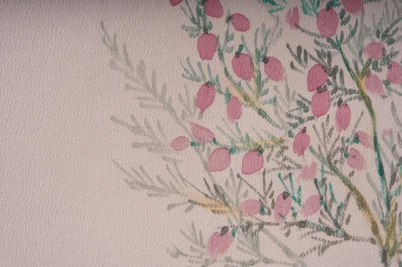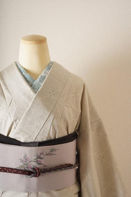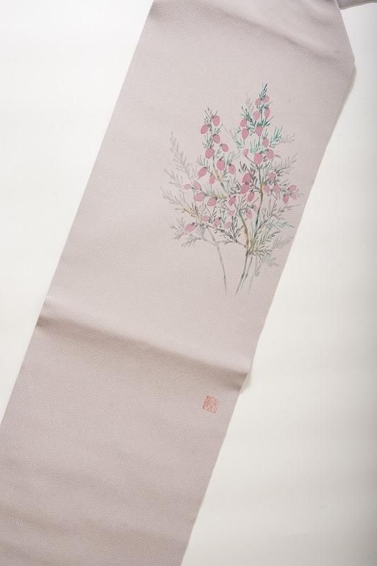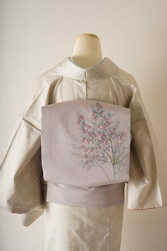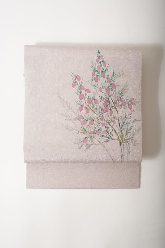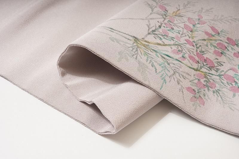商品名 牡丹鼠色に草花のちりめん名古屋帯