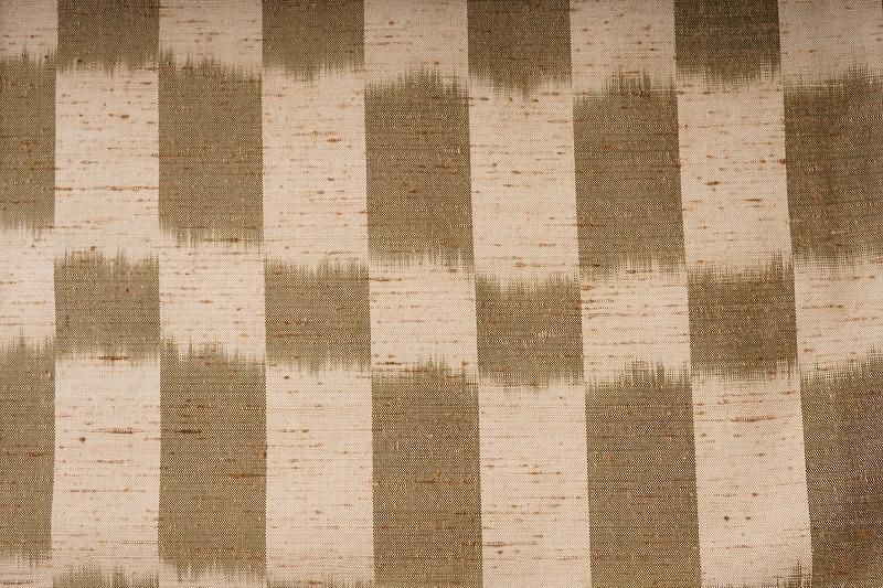 ■特記:自然な表情を生み出すぜんまい紬は、保温性、防水性、防虫性にも優れた織物です。薄香色と鶸色(和色大辞典参照)の市松柄の織暈しの地に、ぜんまい糸が新たな息吹を吹き込むように緯糸に走ります。