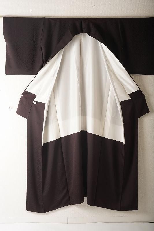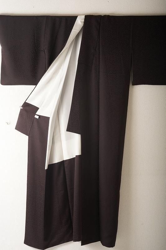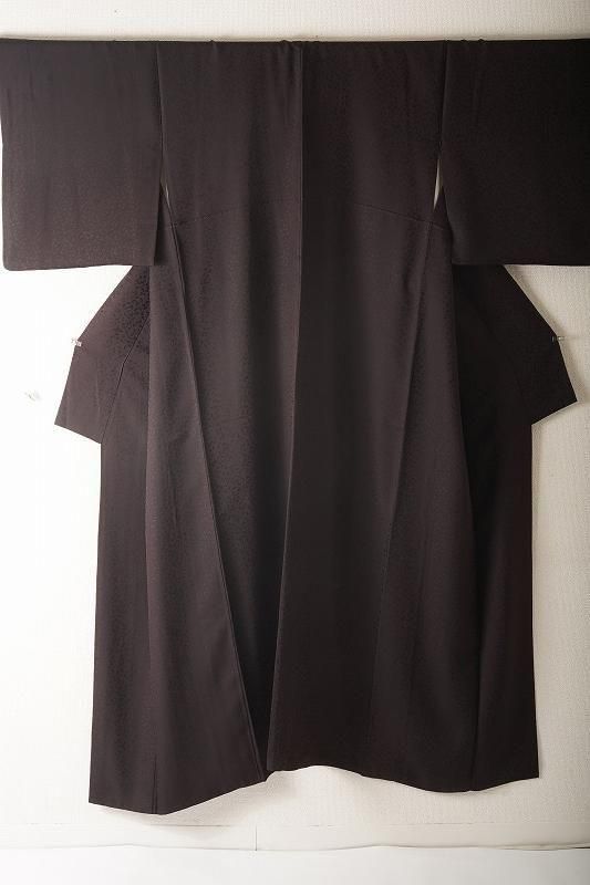僅かに紫がかった深いダークブラウンで、紋が無いのでおしゃれ着としてお召しいただけます。