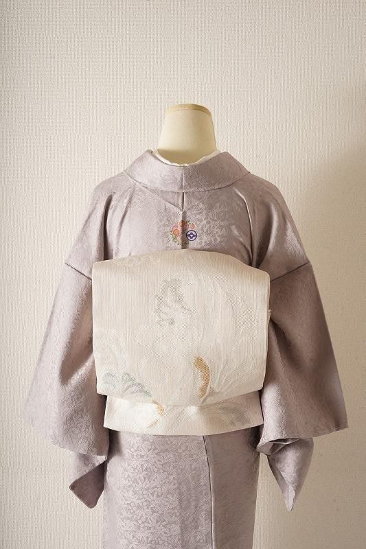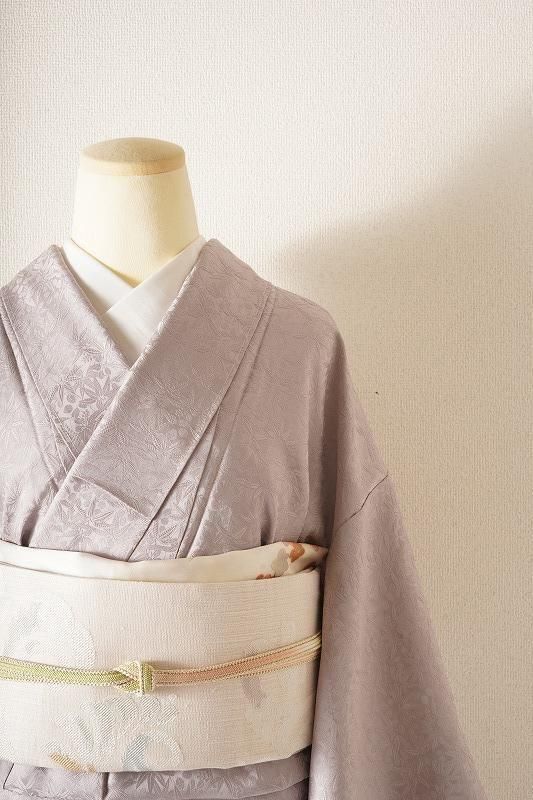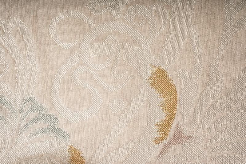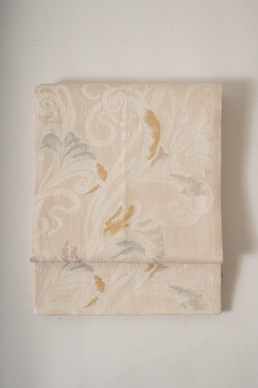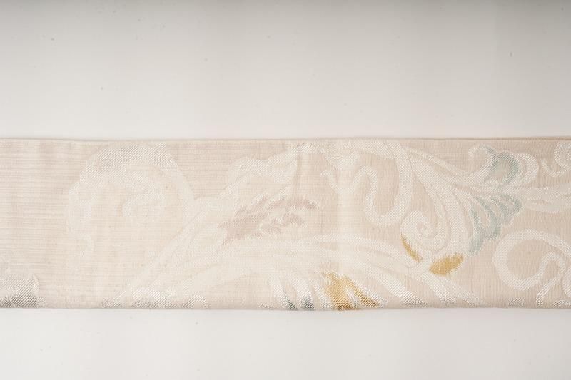 ■特記:柔らかな印象を引き寄せる桜色に、洋花をモチーフとした花模様がエレガントな風合いで織り表されています。