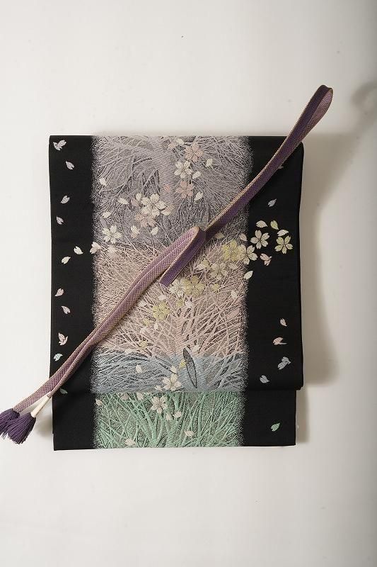 半色と濃鼠色の帯締め