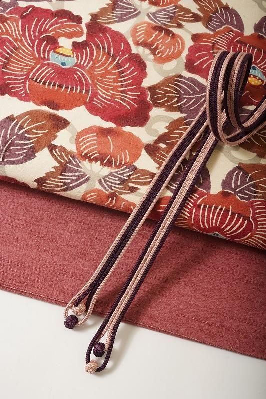 葡萄色と薄柿色の帯締め