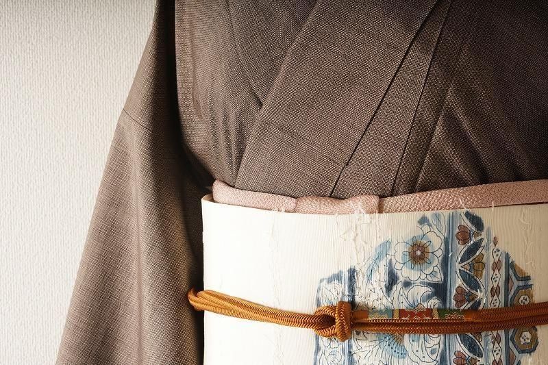 白茶にベージュのちりめん帯揚げ