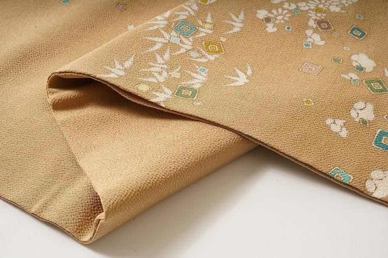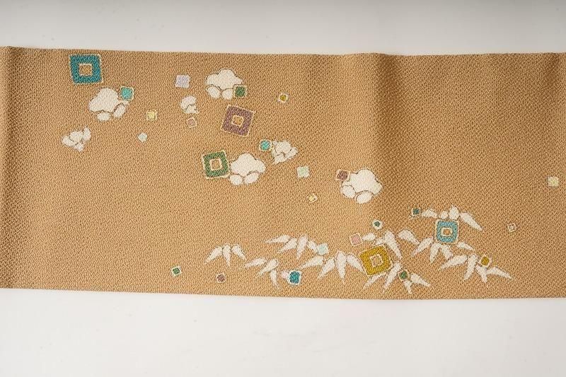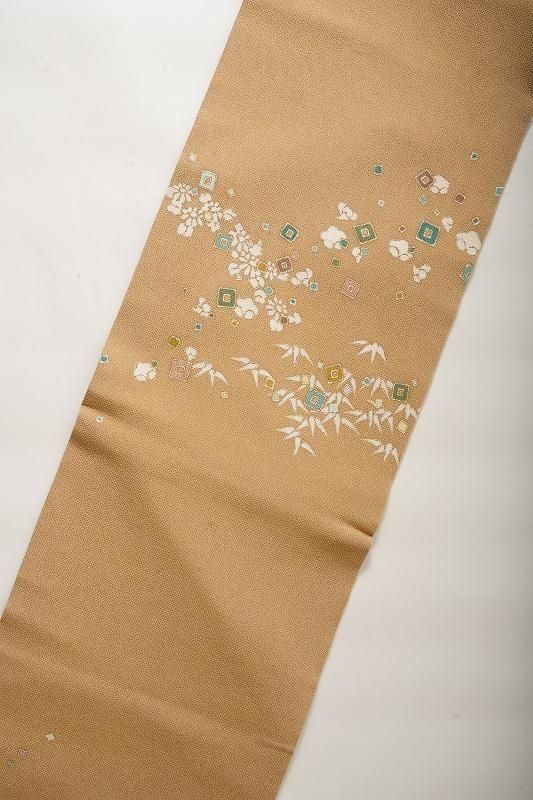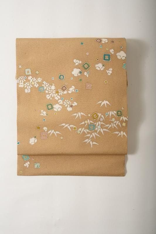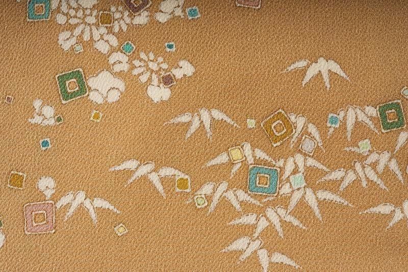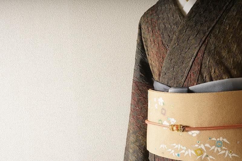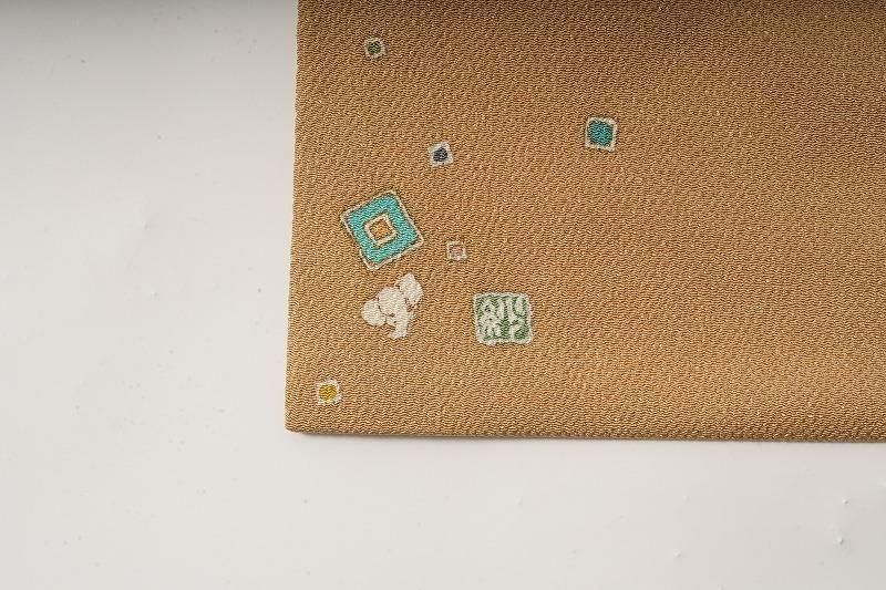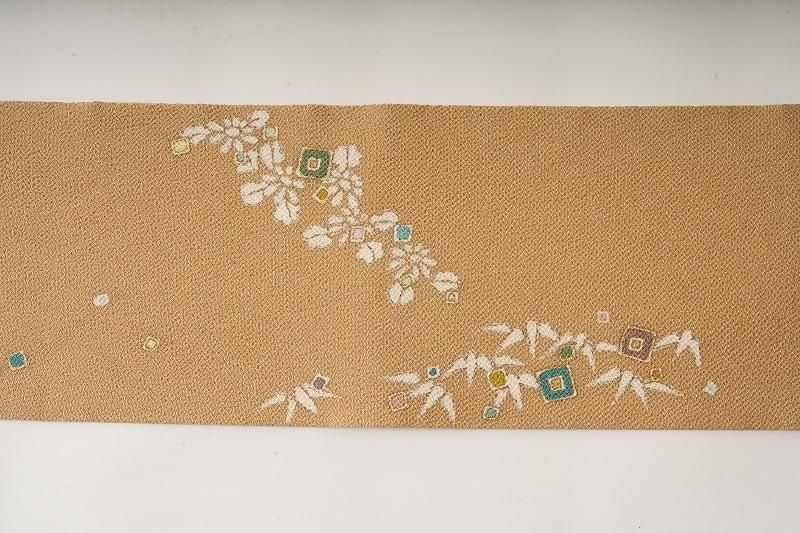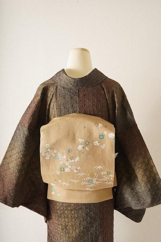 商品名 黄橡色に植物のちりめん名古屋帯