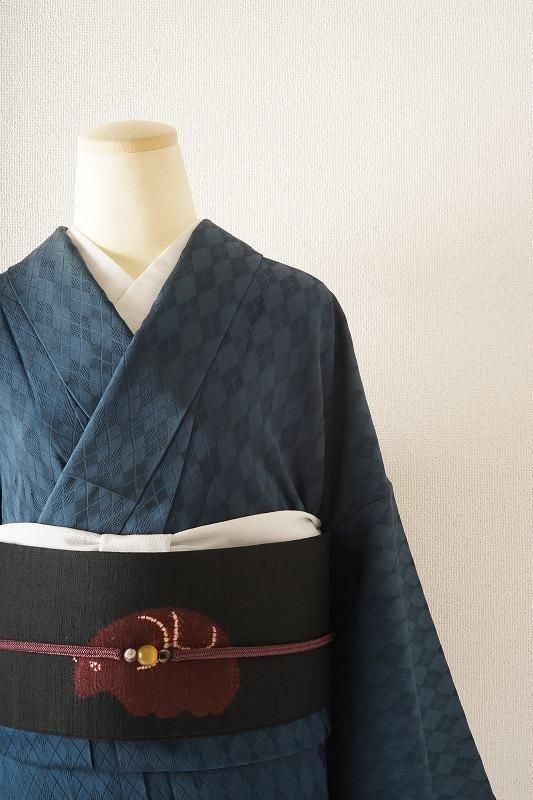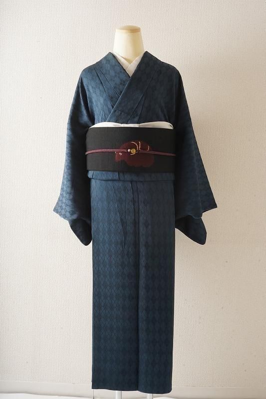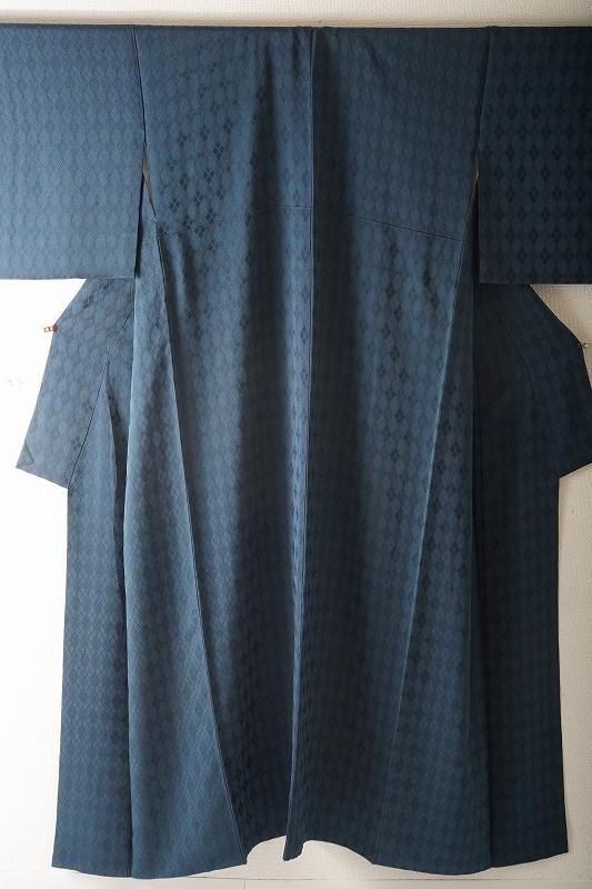 青藍色にアーガイル柄の小紋